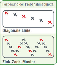 Möchten Sie eine größere Fläche untersuchen lassen, um bspw. zielgerichtet zu düngen, so sollten Sie Bodenproben an mehreren Stellen ziehen. Sie erhalten dann Aufschluss über den Durchschnittswert der genommen Bodenproben. Häufig macht es Sinn Bodenproben auf diese Art zu ziehen, wenn es um Flächen geht, von denen Sie die Bodenqualität in Erfahrung bringen möchten.